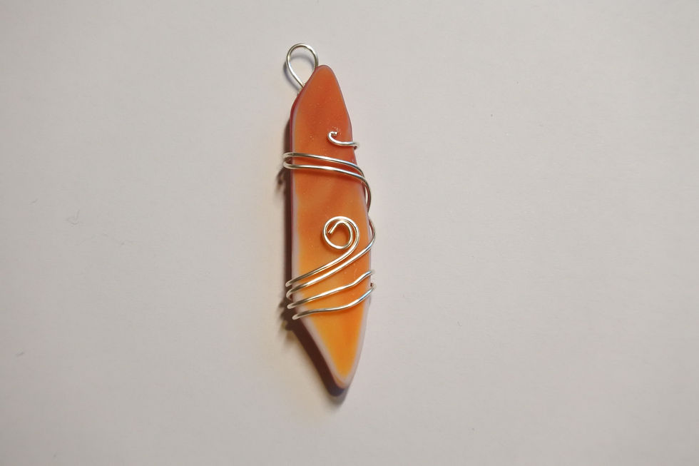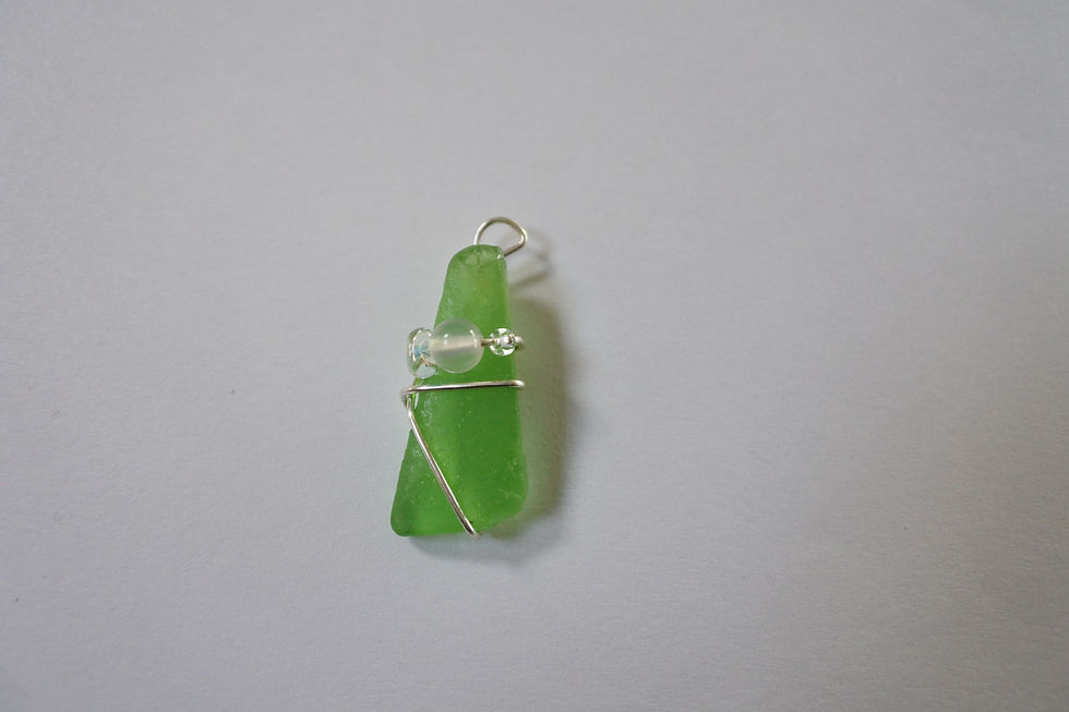 Brown Sea Glass Pendant With Silver Wire Wrapping